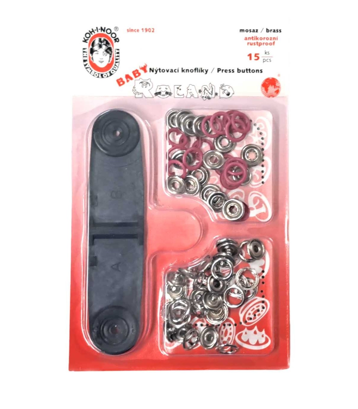 Babydrukkers. Pinkkleurige inslag drukknoop met werktuig. Een open rondje.