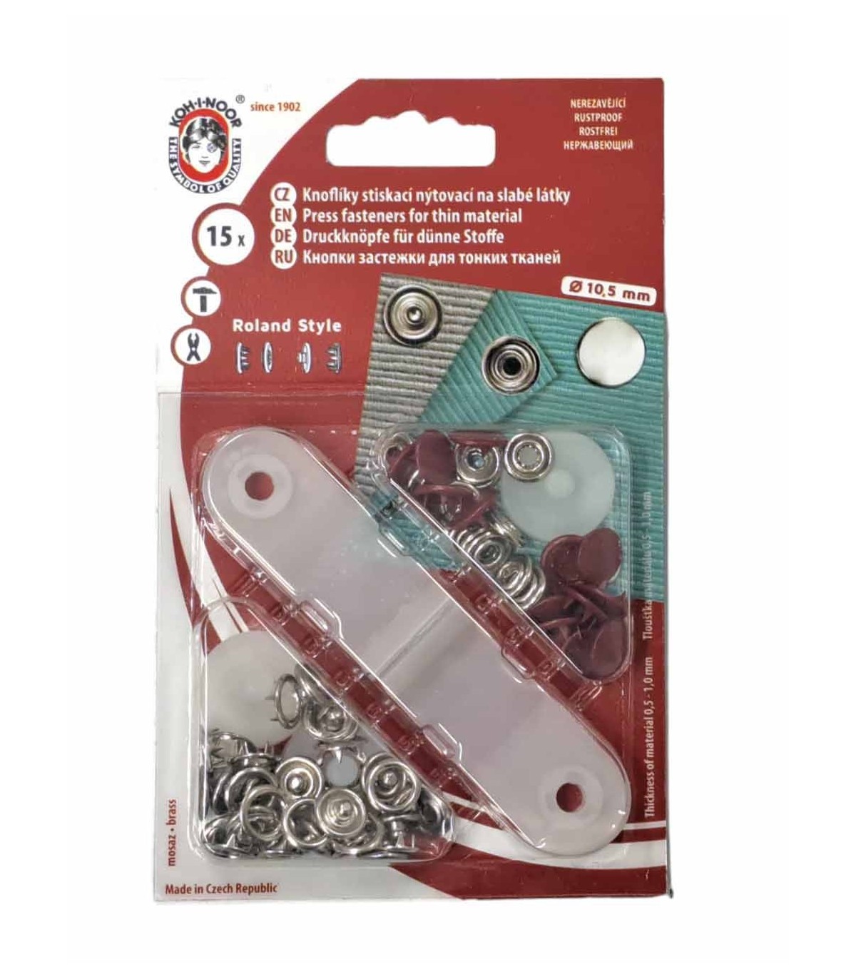 Donkerrode inslagdrukkers. 15 stuks met een doorsnee van 10.5 mm.