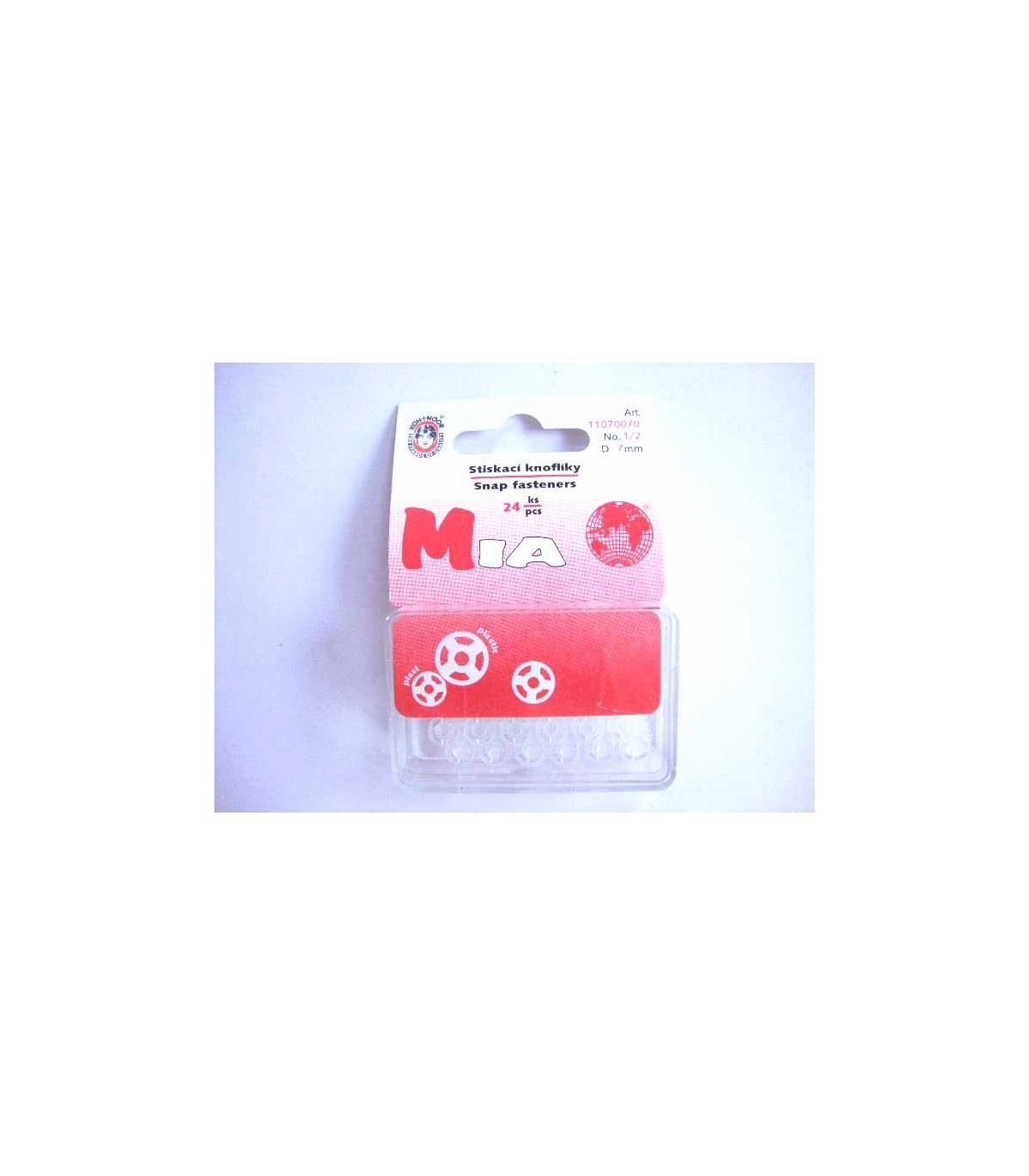 Een kleine plastic drukknoop met een doorsnee van 7 mm. 24 stuks 1,00