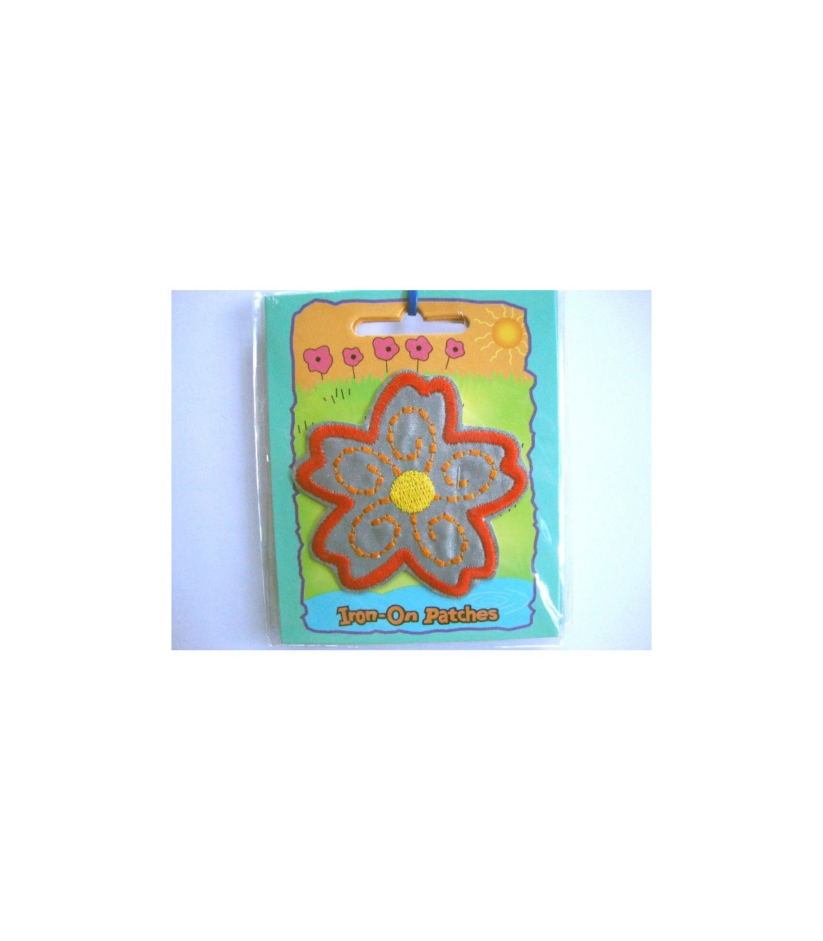 Opstrijkbare grote bloem applicatie met een doorsnee van 6 cm.