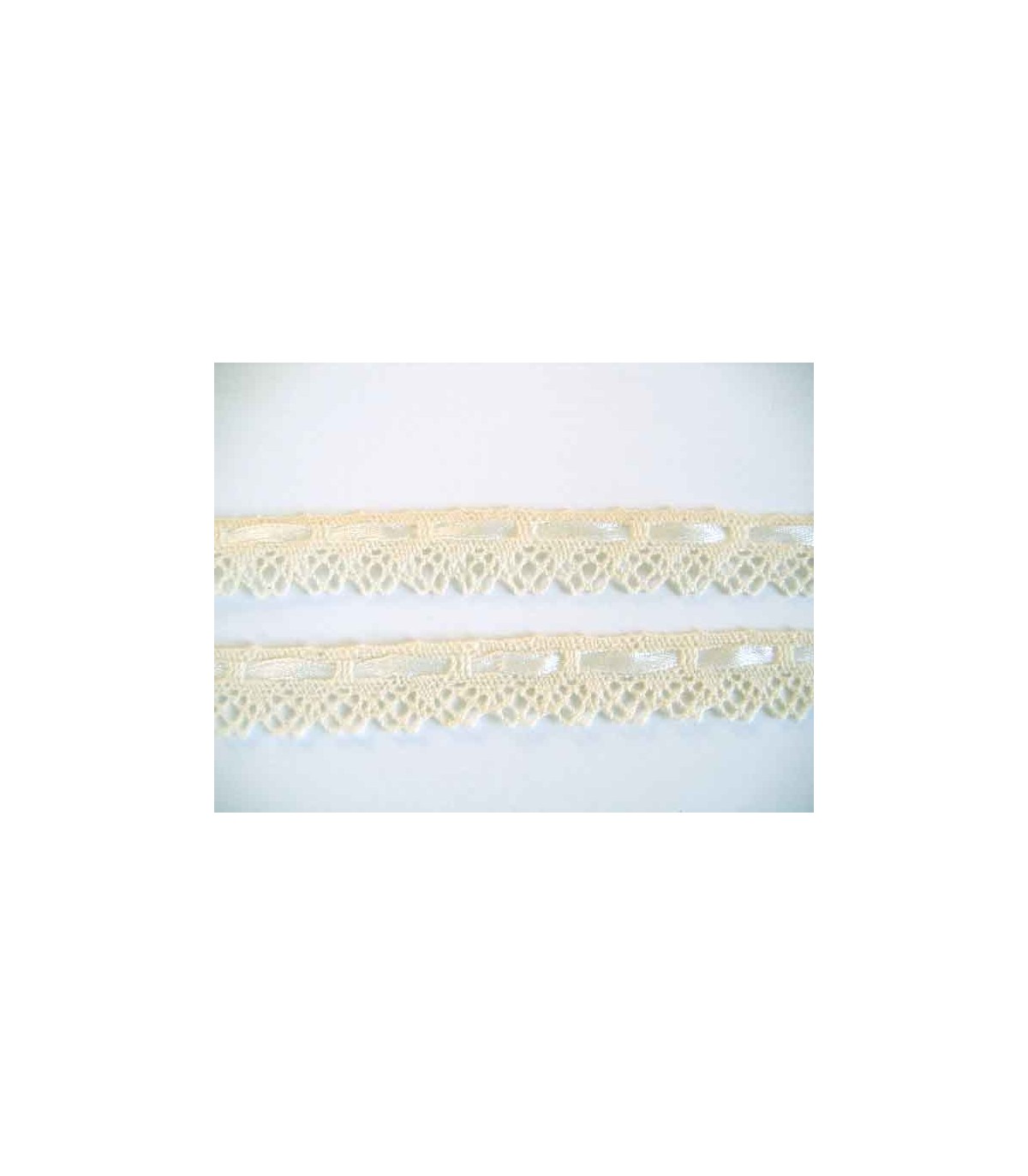 Lijkt gehaakt kant met bijkleurend satijnlint er door geweven