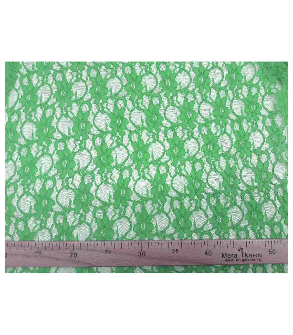 Jacquard kant stof effen lime met bloemenstiksel wat erop ligt.