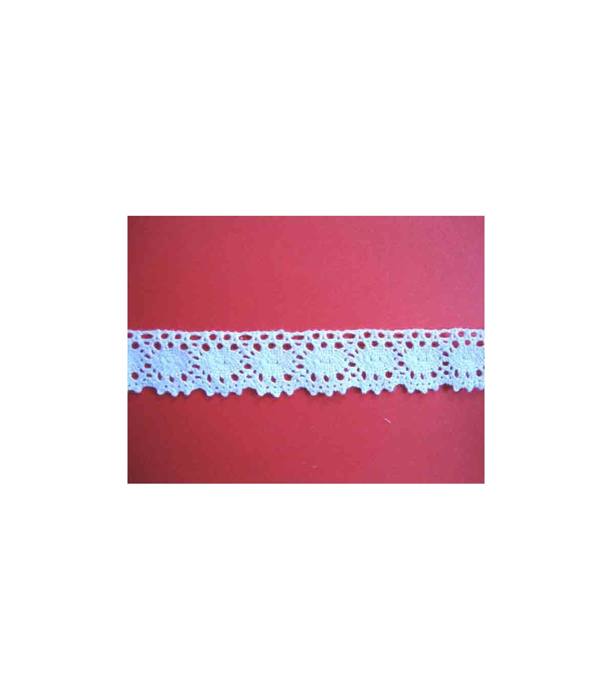 Wit katoen kant, wat gehaakt lijkt.