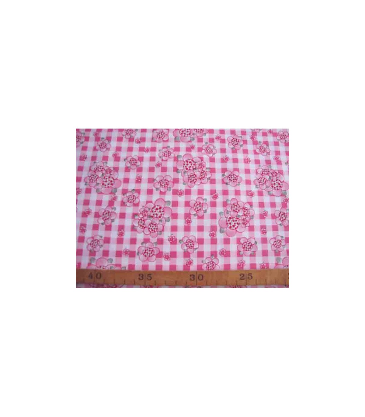 Een poplin katoen met een pinkkleurige BB ruit en bloemprint.
