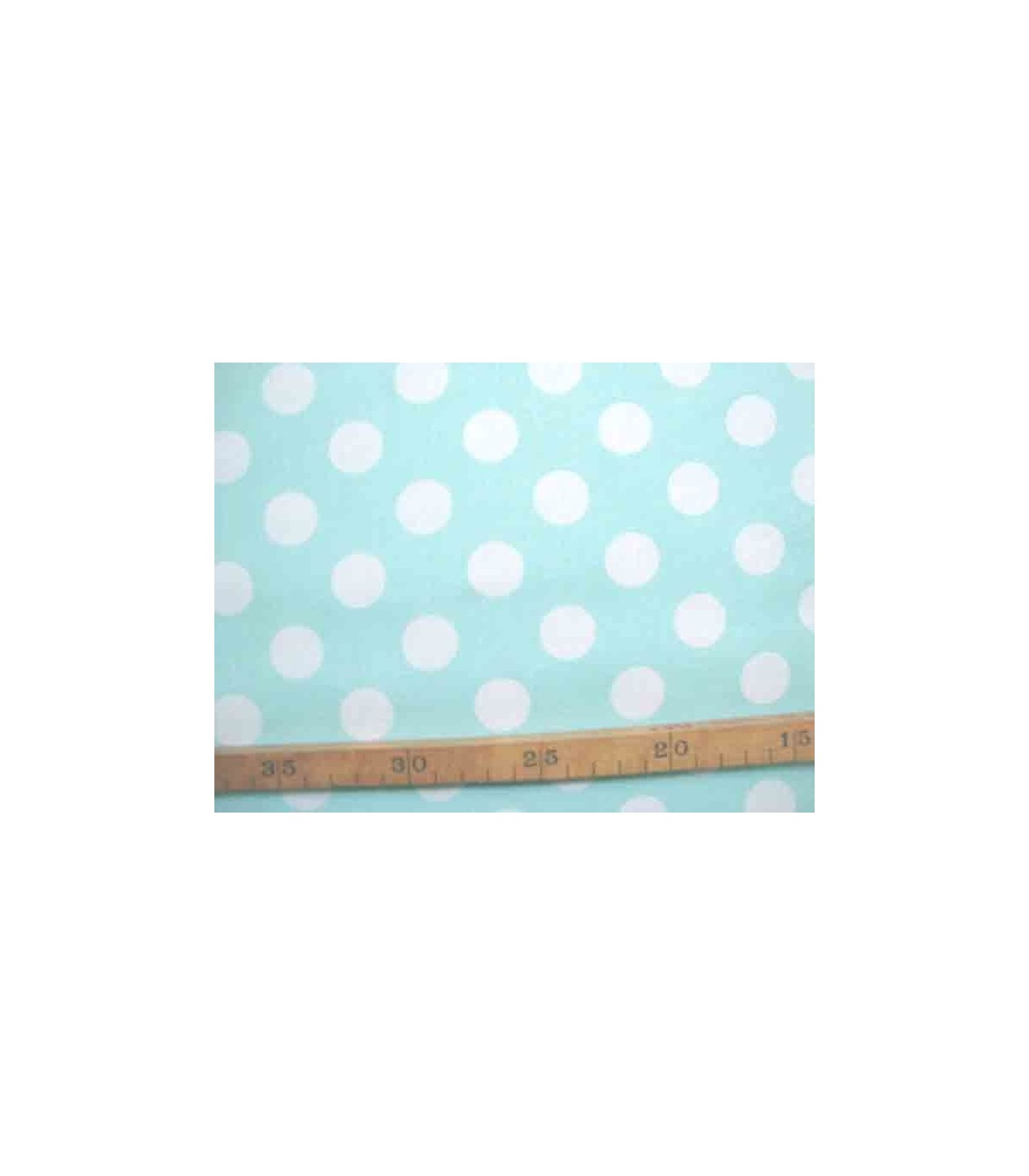 Mintgroene katoen met grote witte stippen. Doorsnee stip is 22 mm.