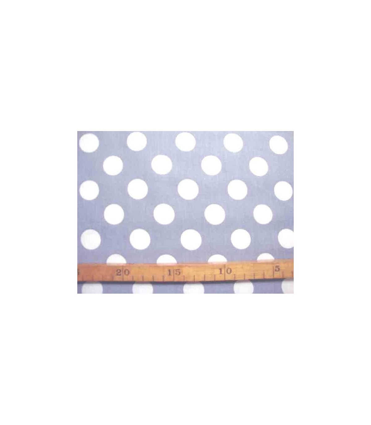 Grijze katoen met grote witte stippen. Doorsnee stip is 22 mm.