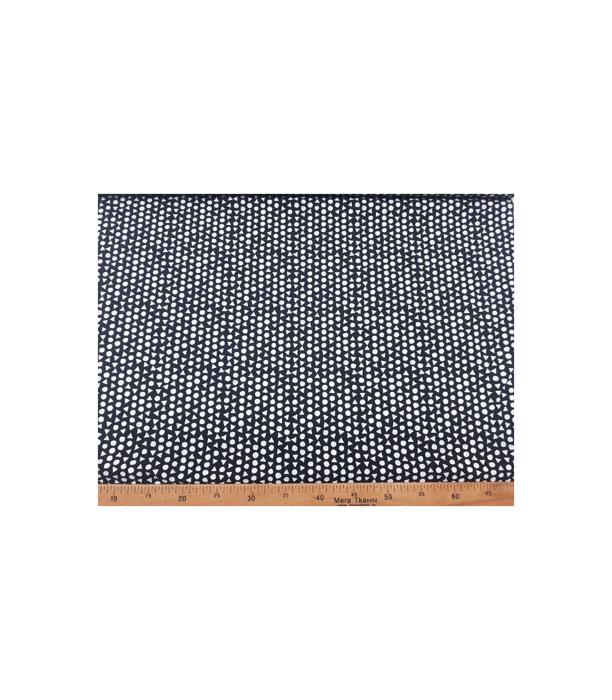 Een zwarte poplin katoen met witte mini driehoekjes en cirkels