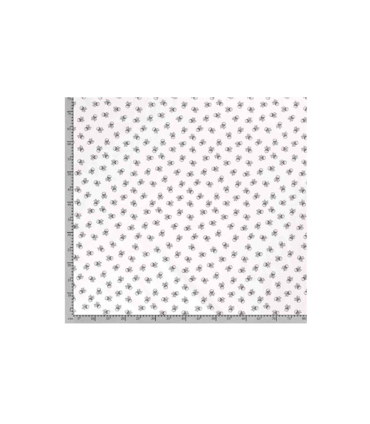 Poplin Katoen Wit/zwart met doodskopjes Klein