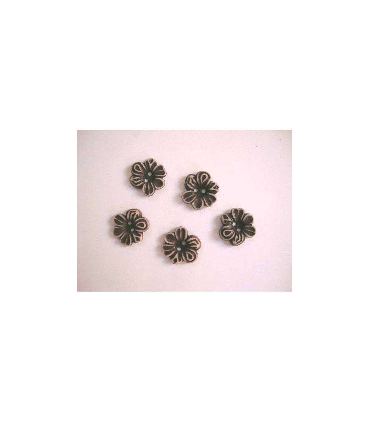 Een bruine kunststof bloemknoop met een doorsnee van 18 mm.