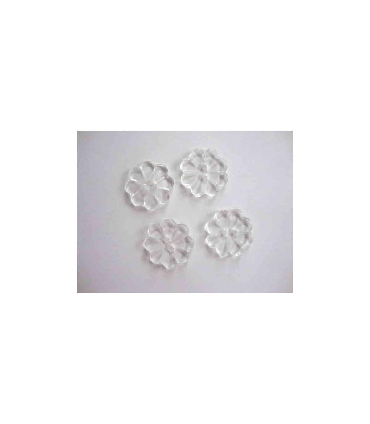 Een wit doorschijnende kunststof bloemknoop met een doorsnee van 25 mm.