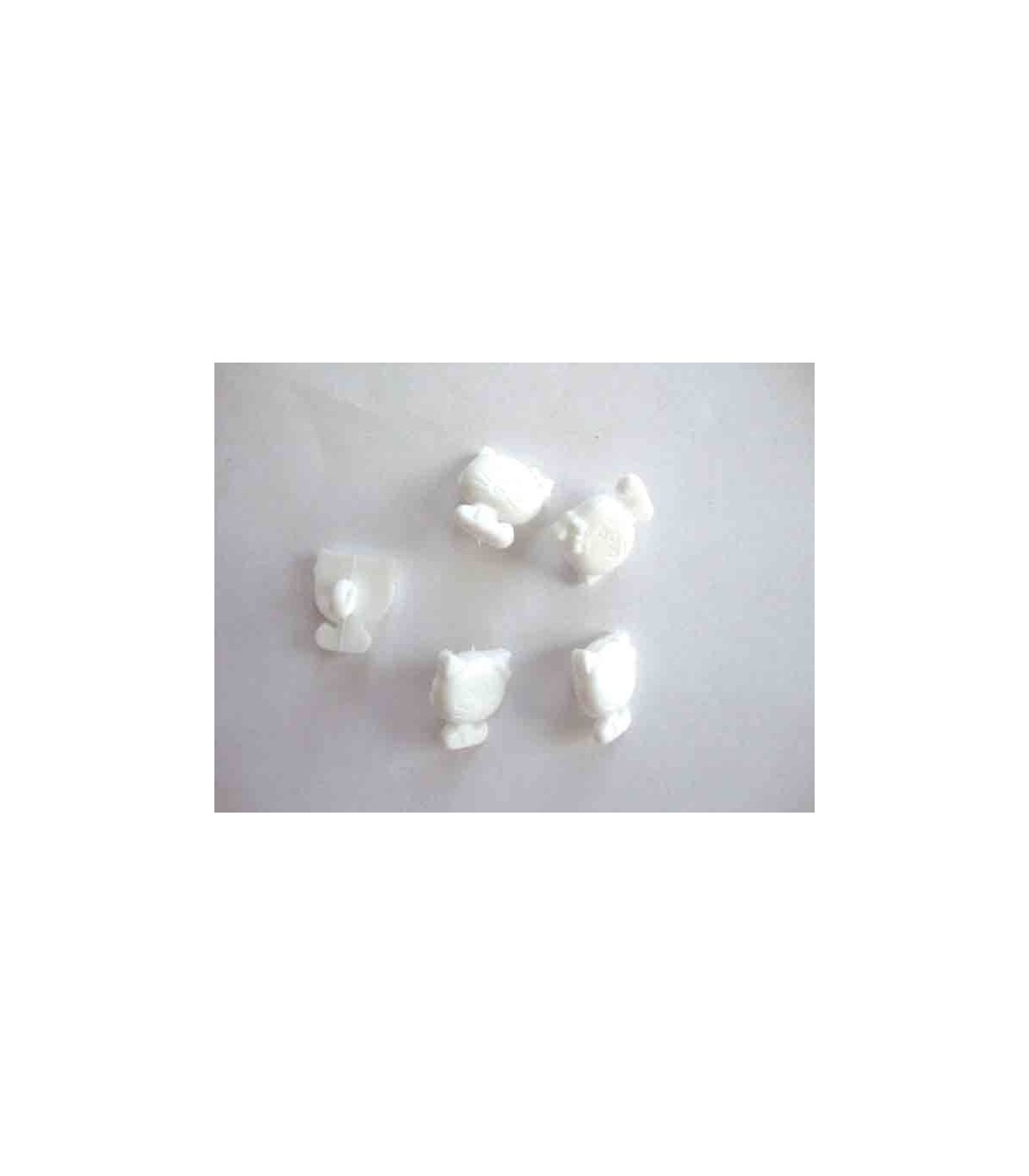 Een witte kunststof poezenknoop met een doorsnee van 15 mm.