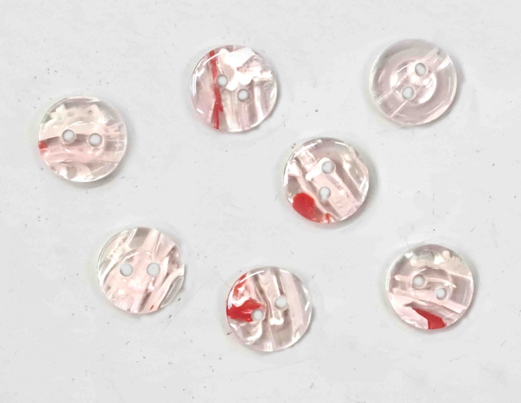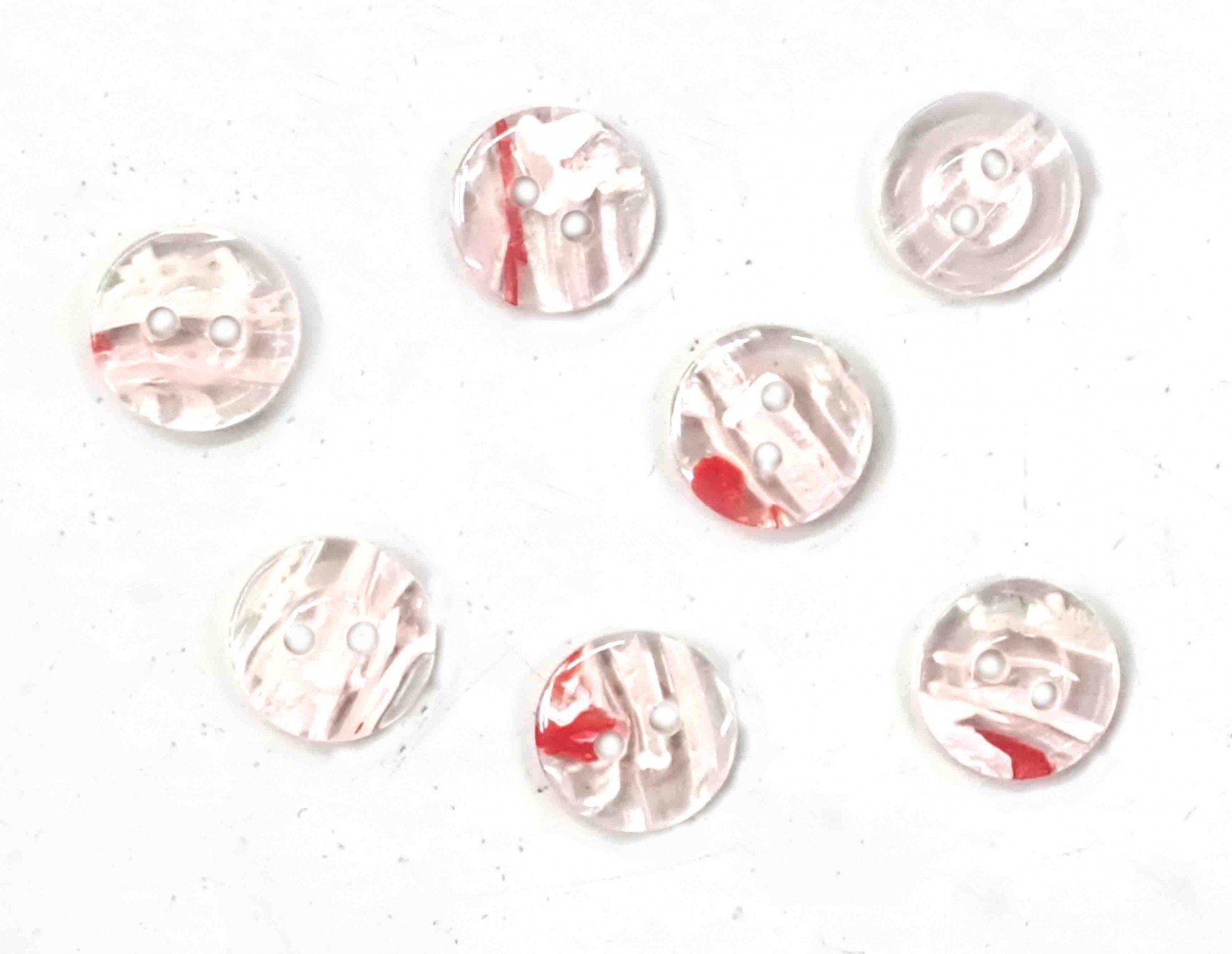 Kinderknoop doorschijnend rood/wit gevlekt 14mm. kkd97