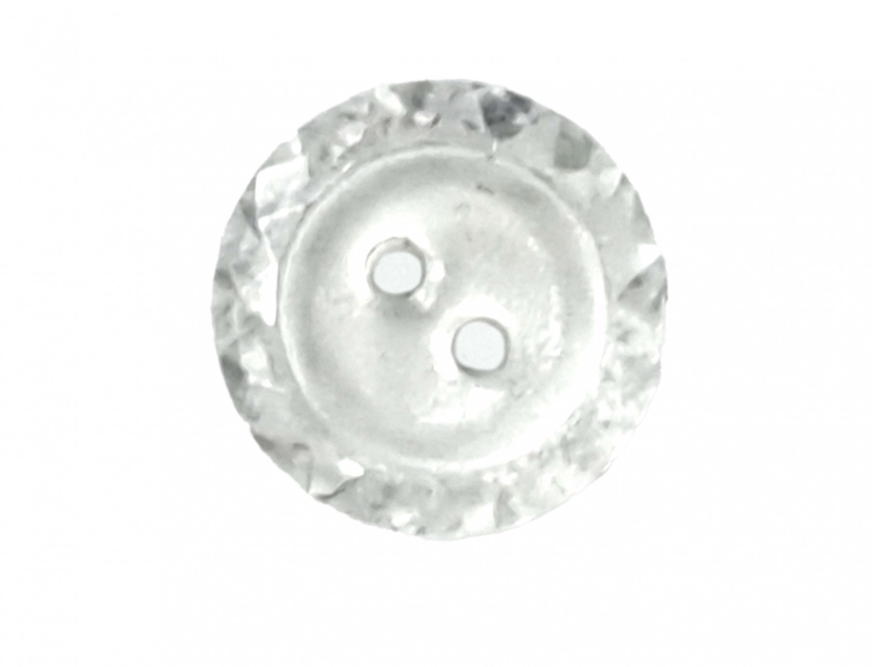Een doorschijnende kunststof knoop met een golfrandje en facetten