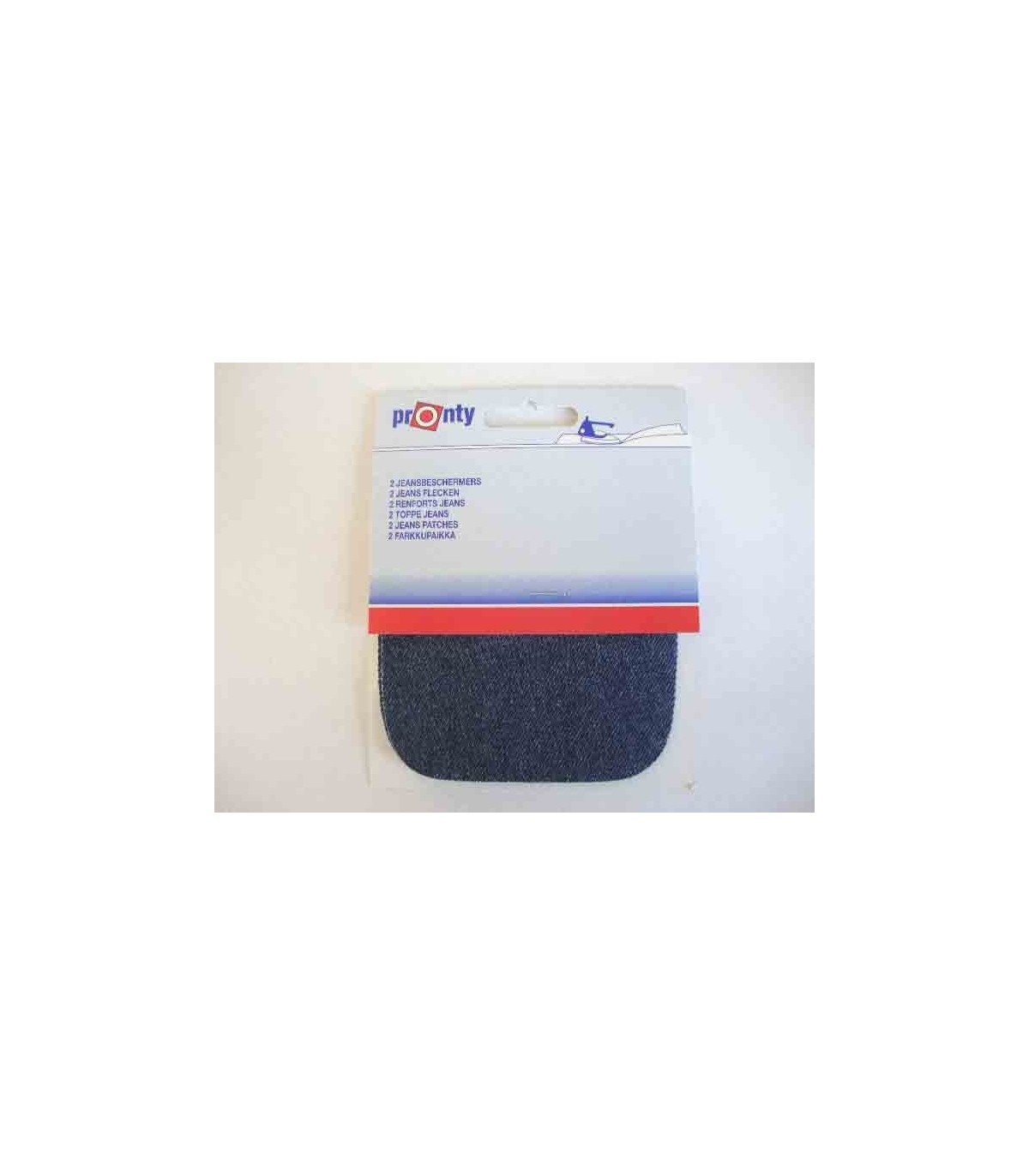 Midden jeanskleurige opstrijkbare kniestukken. Per twee verpakt.