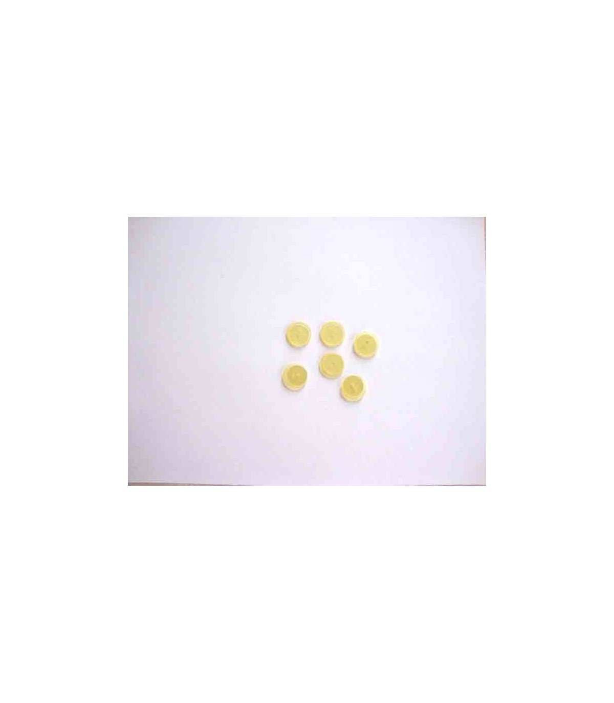 Een dubbele gele kunststof knoop met een doorsnee van 12 mm.