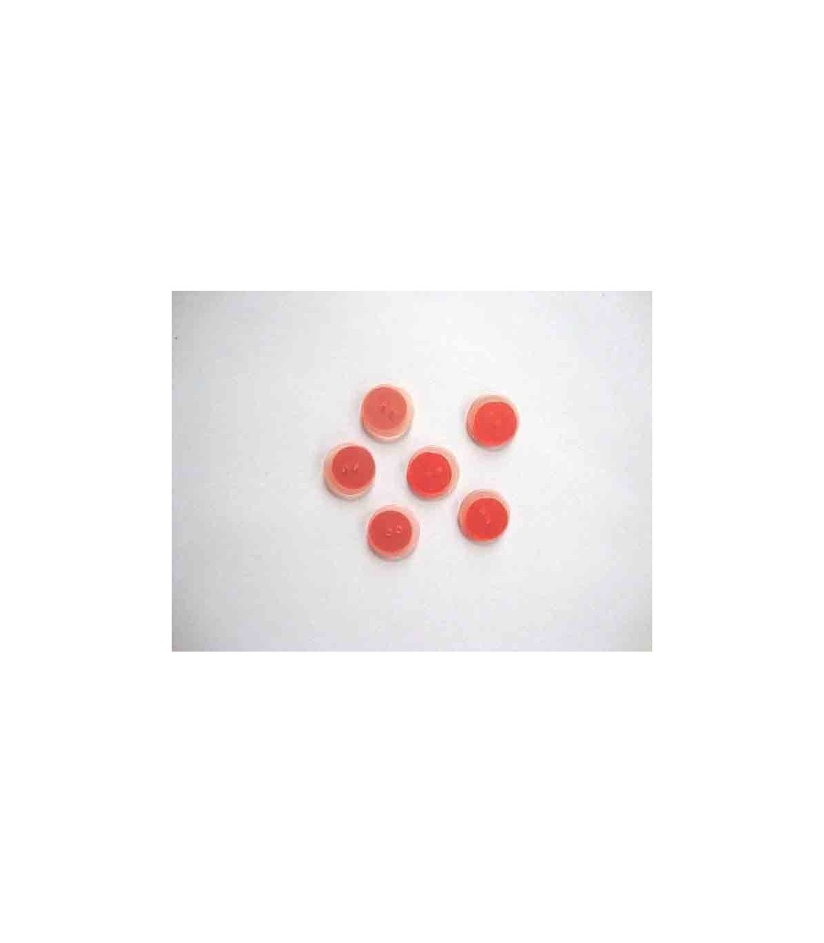 Een dubbele oranje kunststof knoop met een doorsnee van 15 mm.