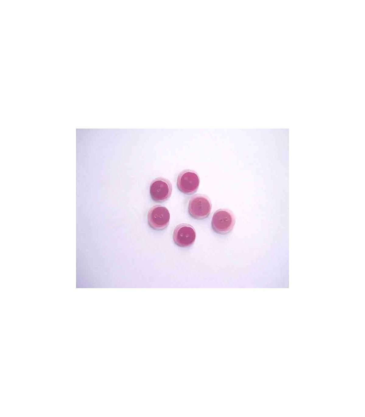 Een dubbele fuchsia kunststof knoop met een doorsnee van 15 mm.