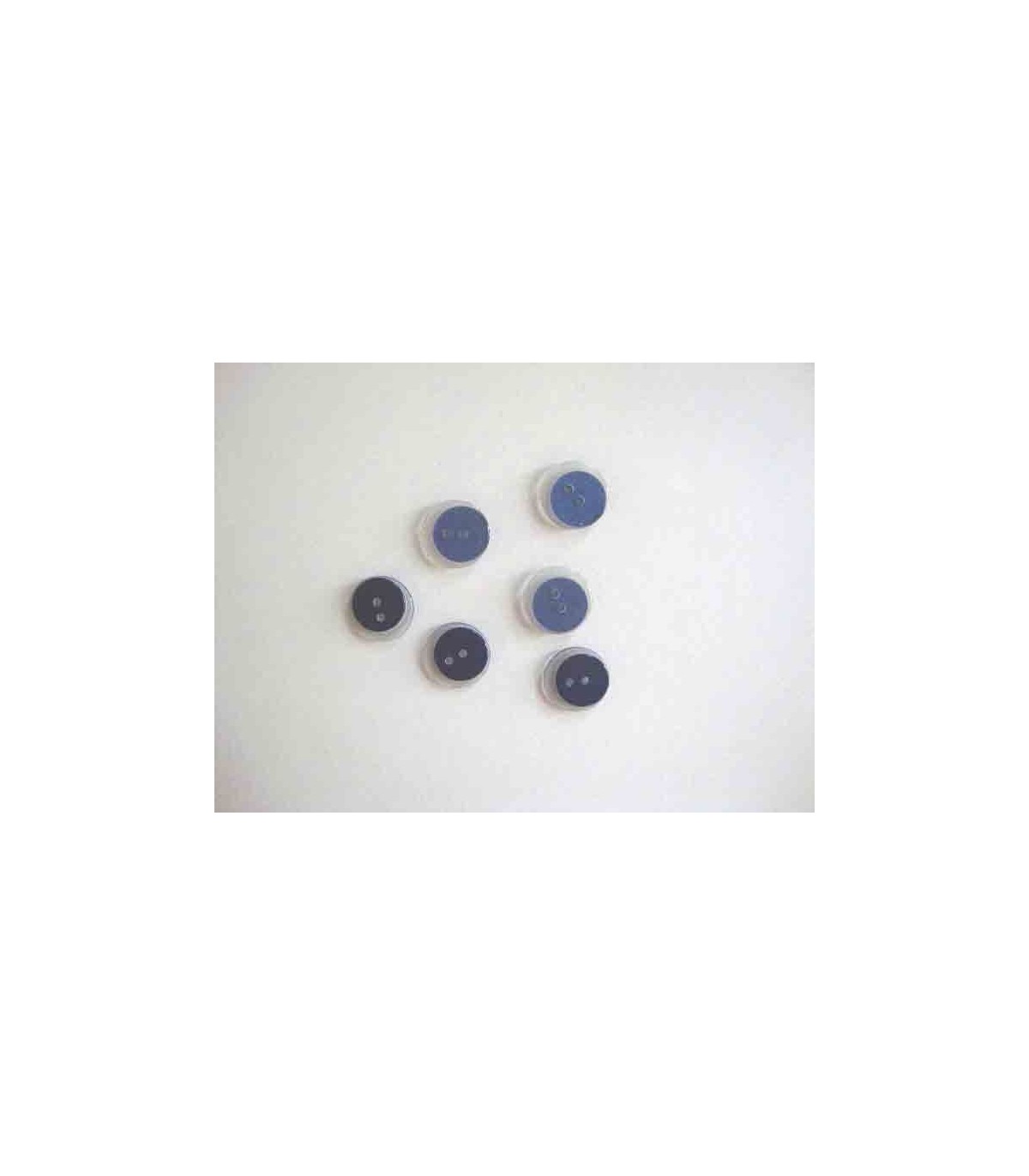 Een dubbele kobalt kleurige kunststof knoop met een doorsnee van 15 mm.