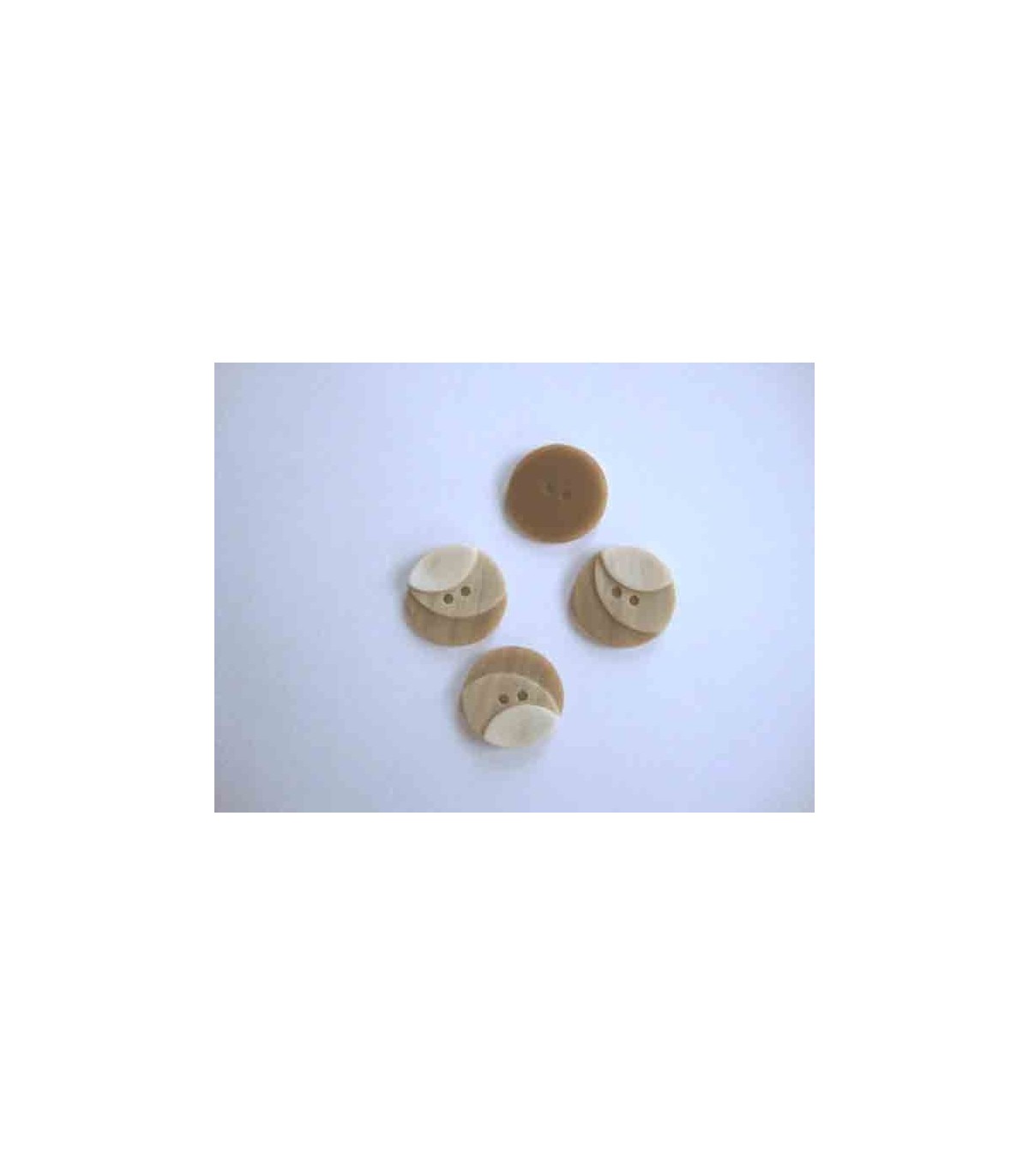Een drie kleurige zandkleurige kunststof knoop met een doorsnee van 20 mm.