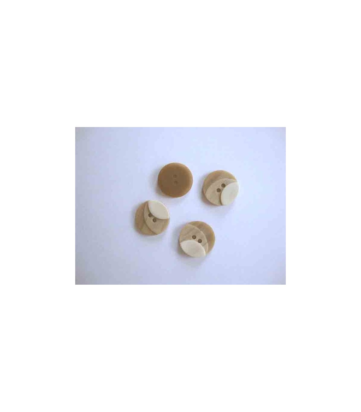 Een drie kleurige zandkleurige kunststof knoop met een doorsnee van 18 mm.