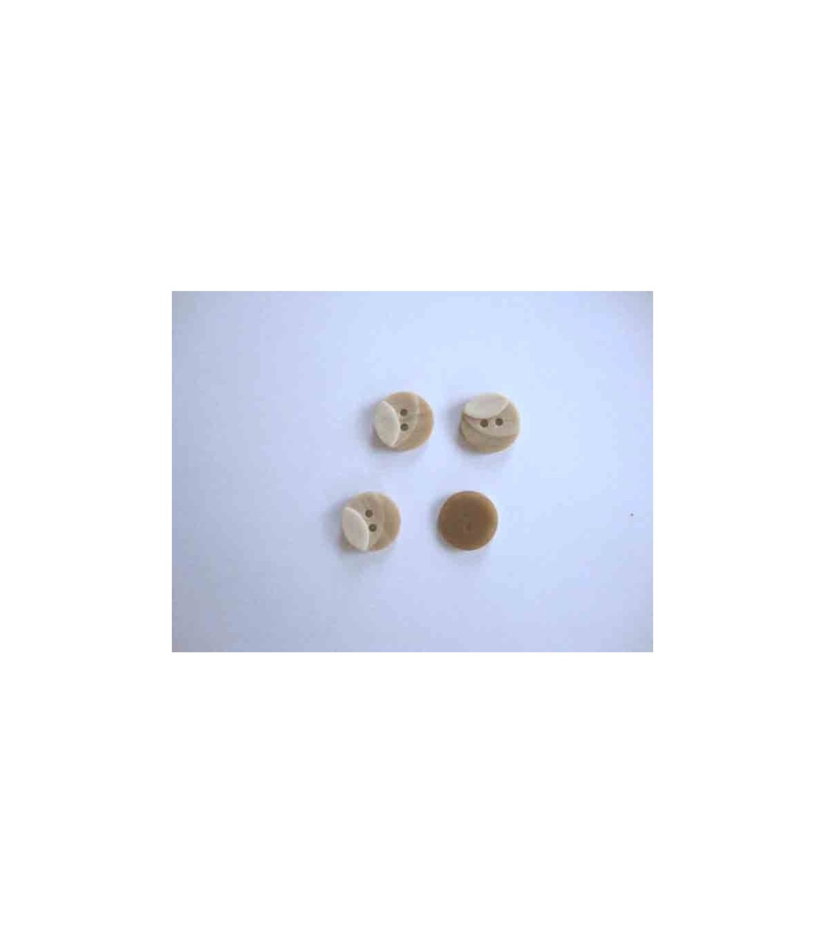 Een drie kleurige zandkleurige kunststof knoop met een doorsnee van 12 mm.