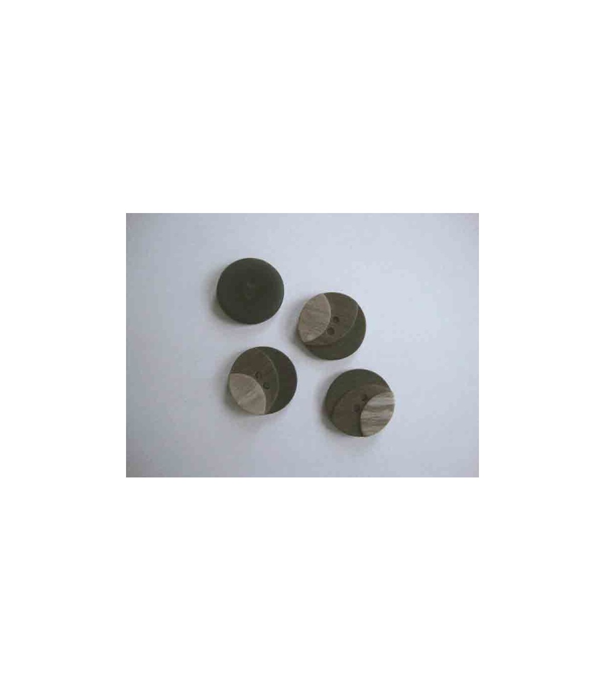 Een drie kleurige bruine kunststof knoop met een doorsnee van 20 mm.