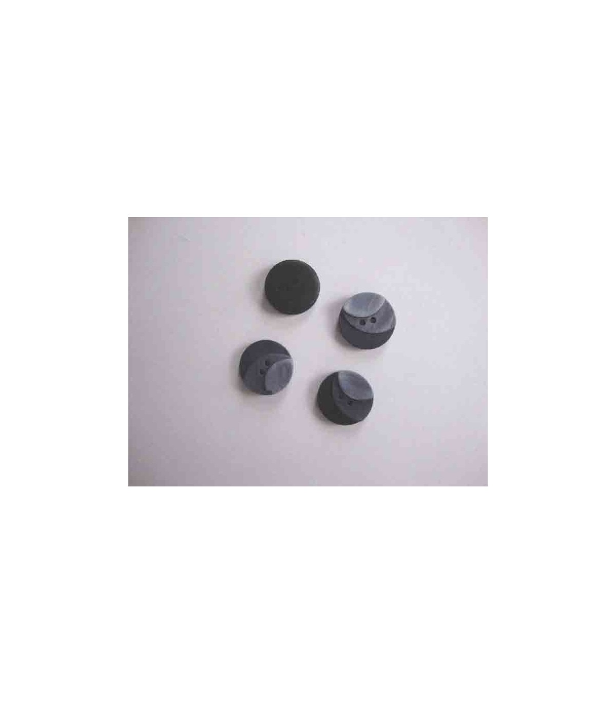 Een drie kleurige grijze kunststof knoop met een doorsnee van 15 mm.