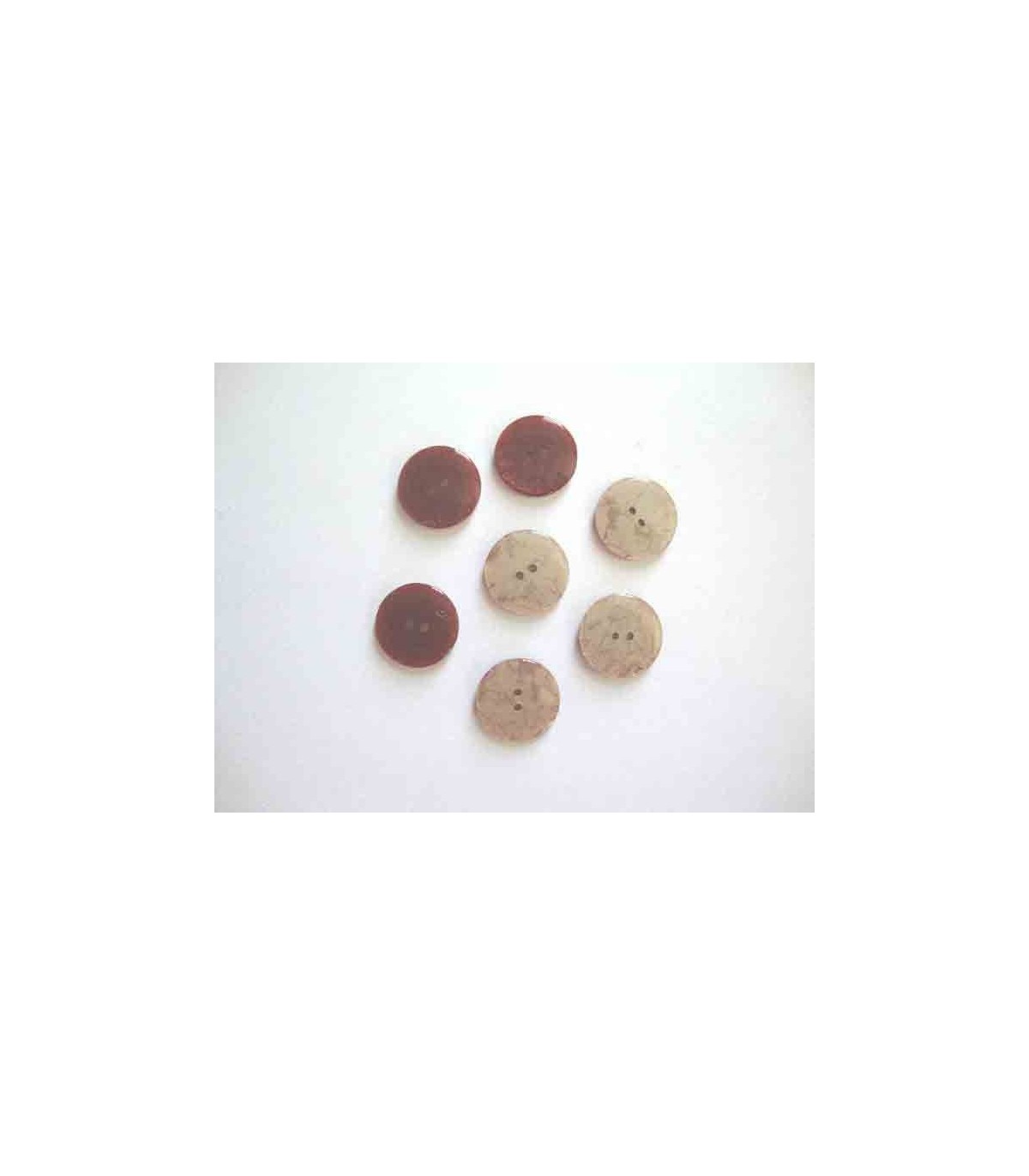 Een glanzende gemeleerde bruine knoop met een doorsnee van 18 mm.