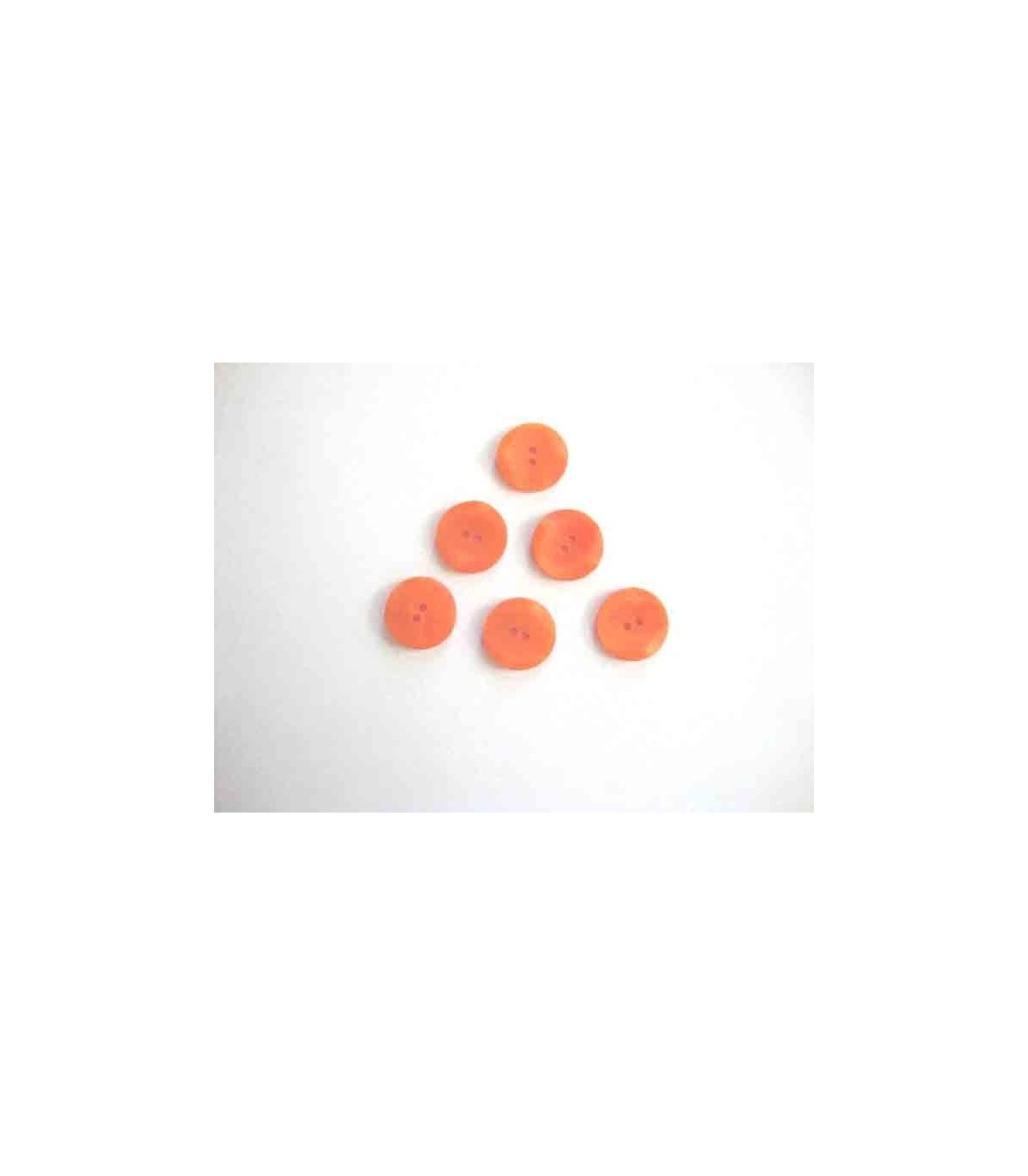 Een oranje kunststof knoop met een doorsnee van 18 mm.