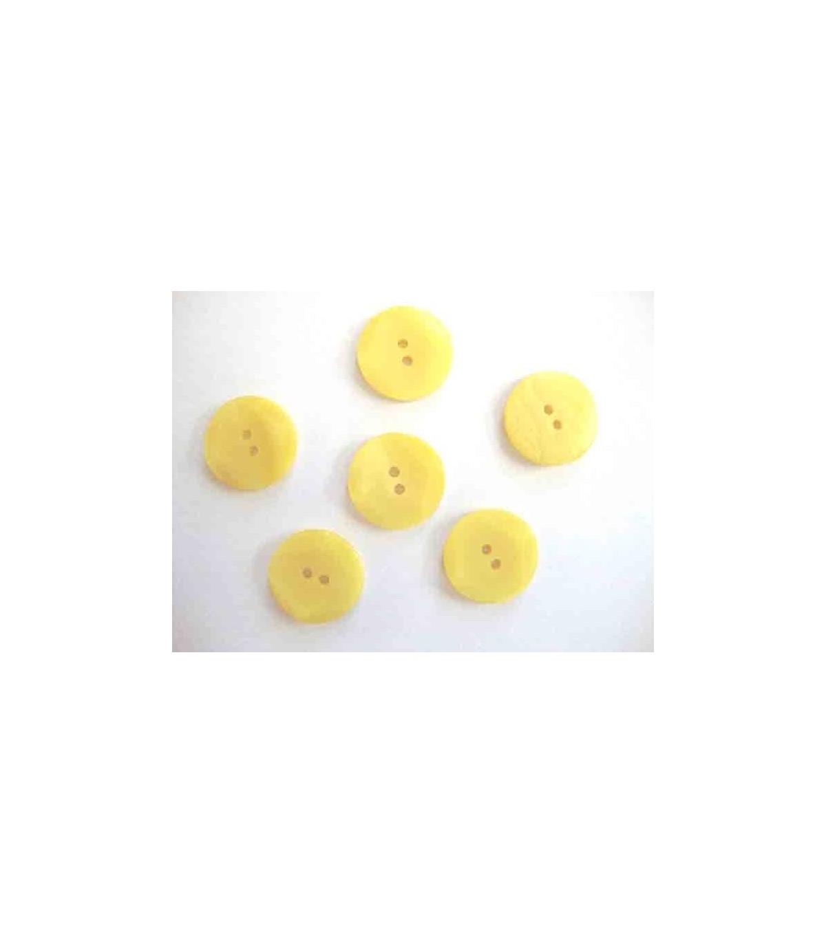 Een gele kunststof knoop met een doorsnee van 20 mm.