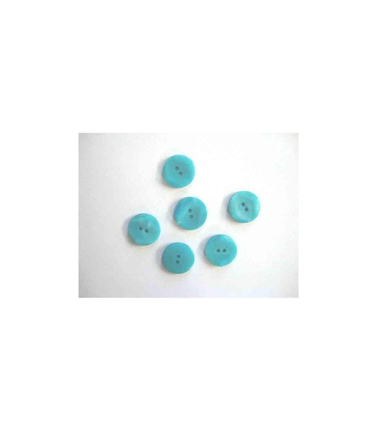 Een aqua kunststof knoop met een doorsnee van 18 mm.