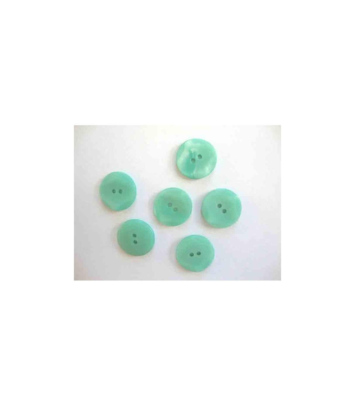 Een mintgroene kunststof knoop met een doorsnee van 20 mm.