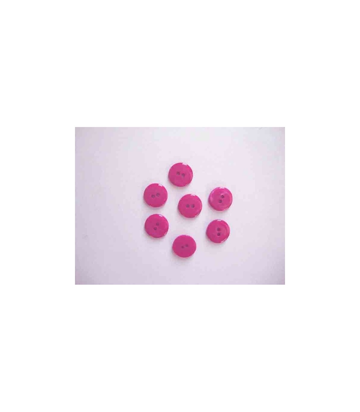 Een glanzende gladde tweegaats fuchsia knoop met een doorsnee van 18 mm.