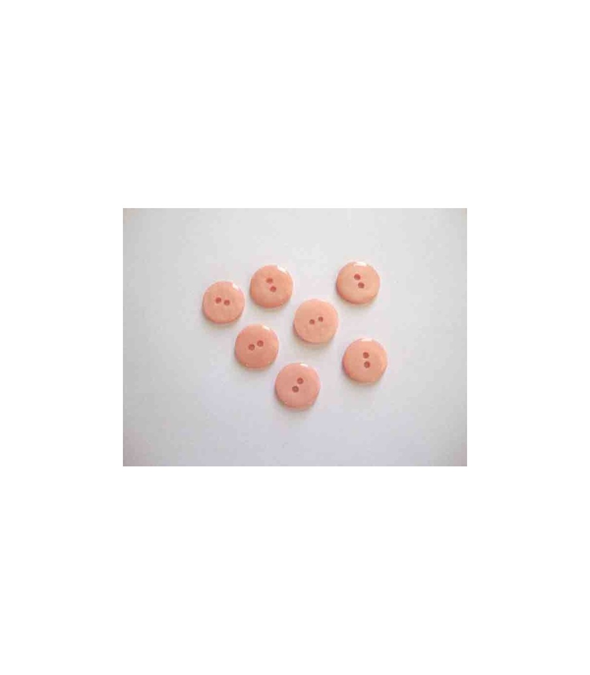 Een glanzende gladde zalmkleurig tweegaats knoop met een doorsnee van 18 mm.