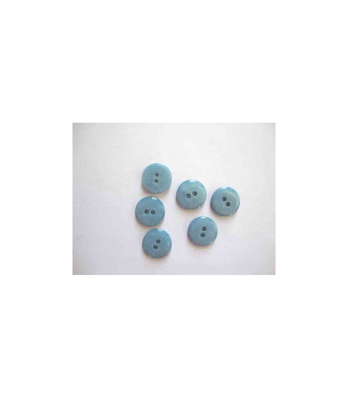 Een glanzende gladde tweegaats blue knoop met een doorsnee van 18 mm.