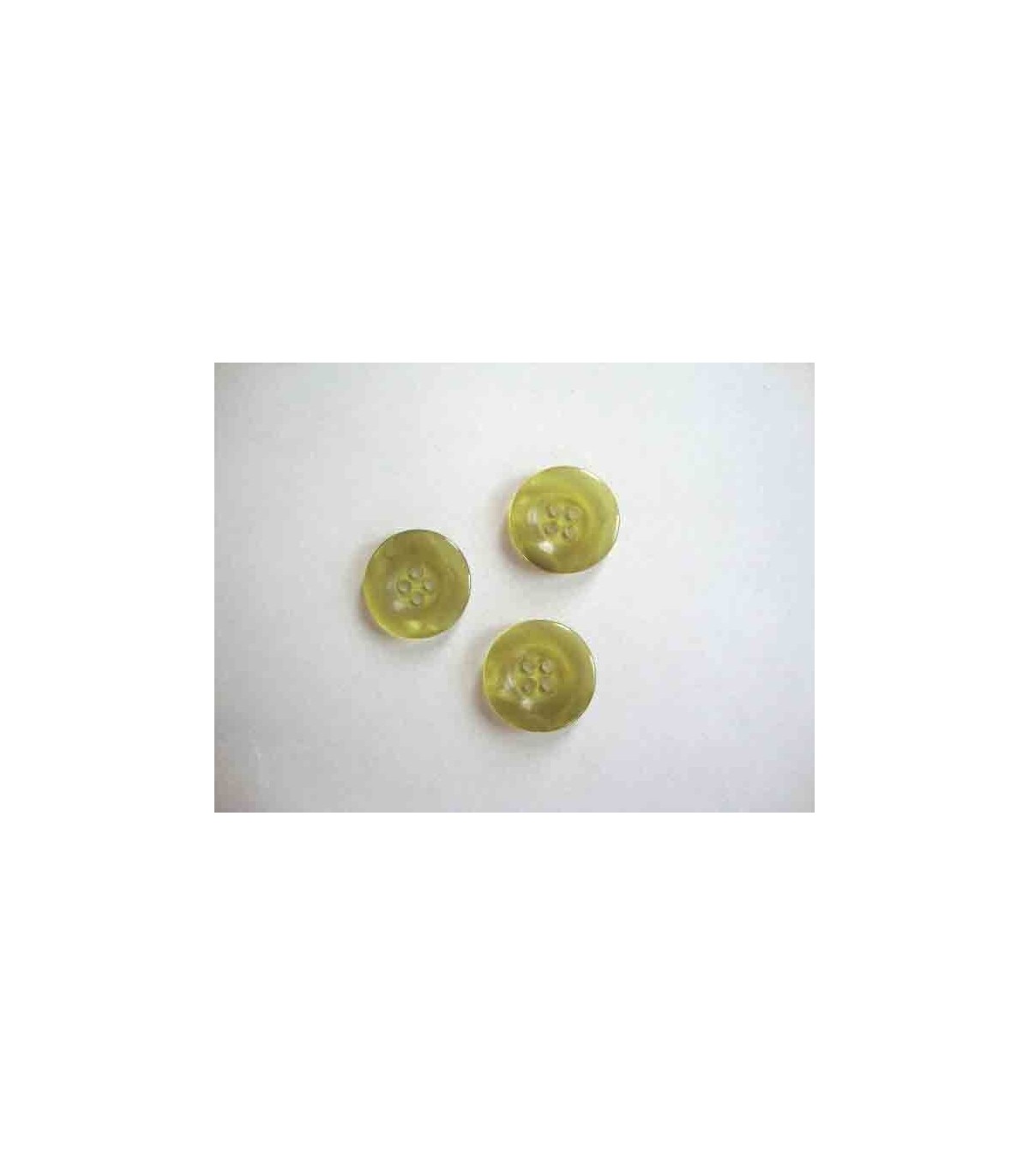 Een groene 4 gaats kunststof knoop, doorschijnend en iets gemeleerd. Doorsnee 20 mm.