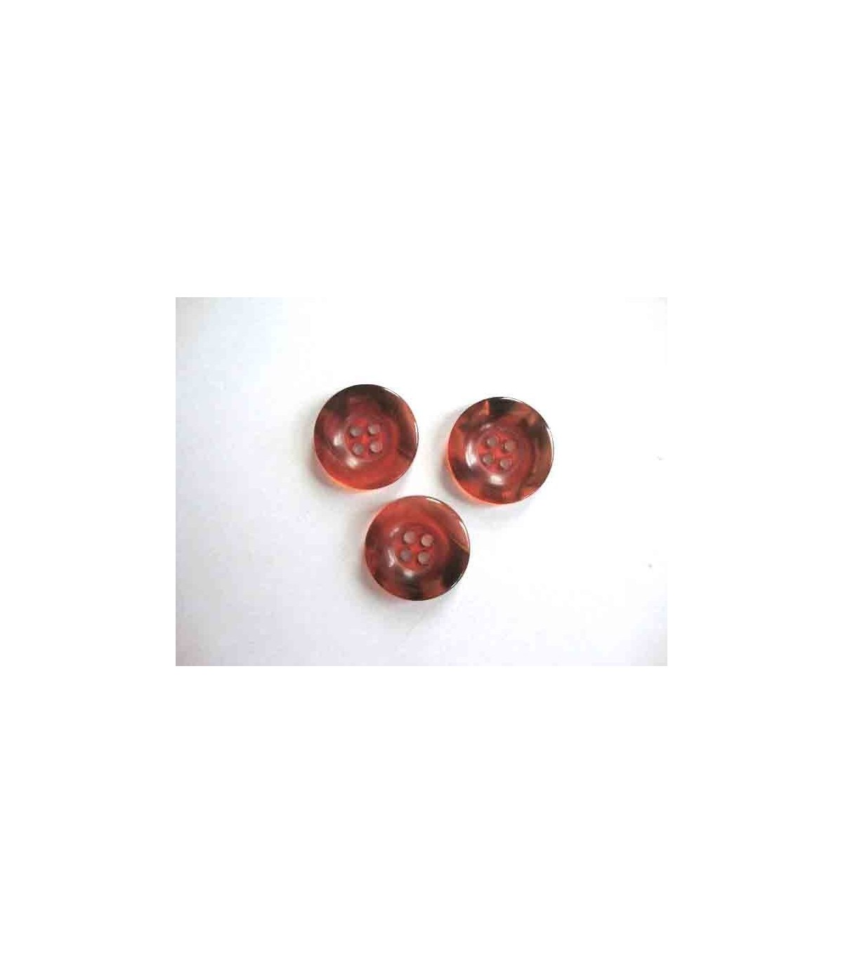 Een camelkleurige 4 gaats kunststof knoop, doorschijnend en iets gemeleerd.