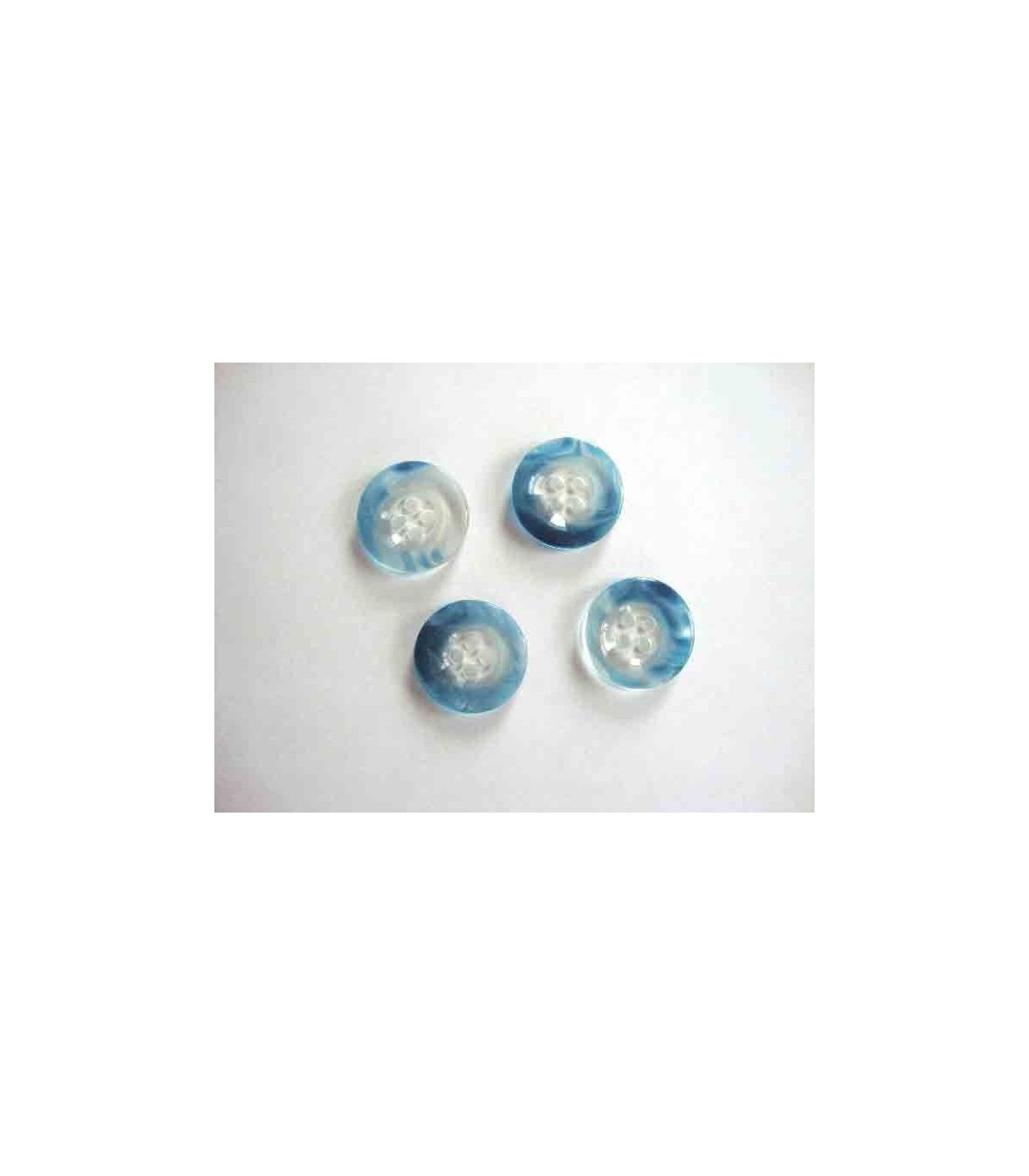 Een aquakleurie 4 gaats kunststof knoop, doorschijnend en iets gemeleerd.