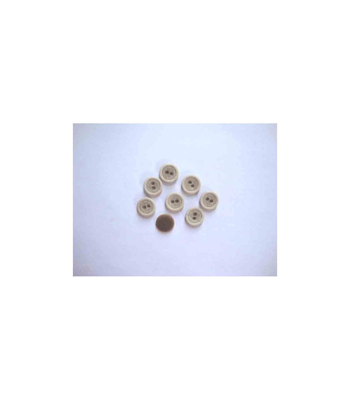 Een zand kleurige 2 gaats kunststof knoop met een doorsnee van 12 mm.