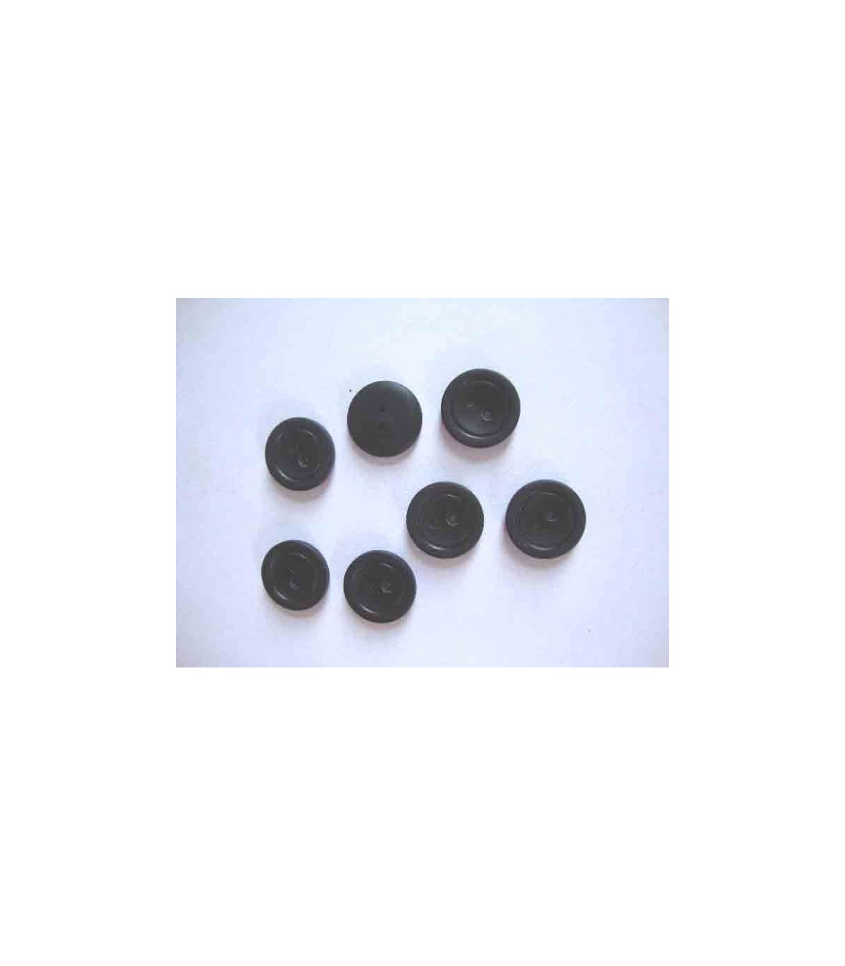 Een zwarte 2 gaats kunststof knoop met een doorsnee van 18 mm.