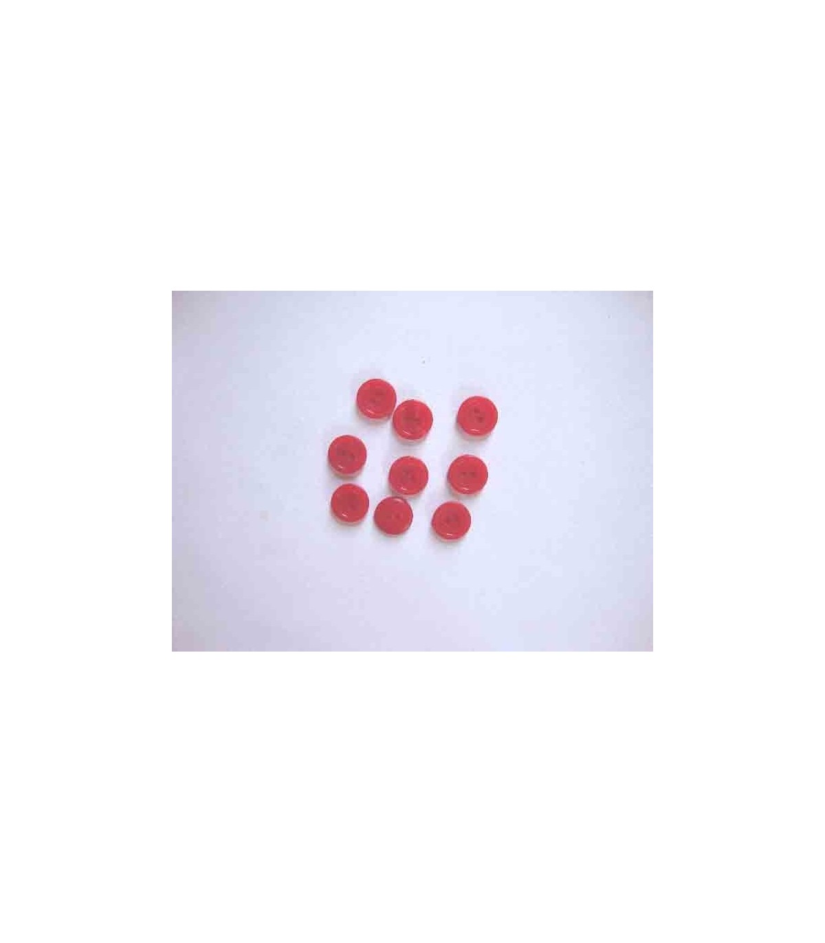 Een rode 2 gaats kunststof knoop met een doorsnee van 12 mm.