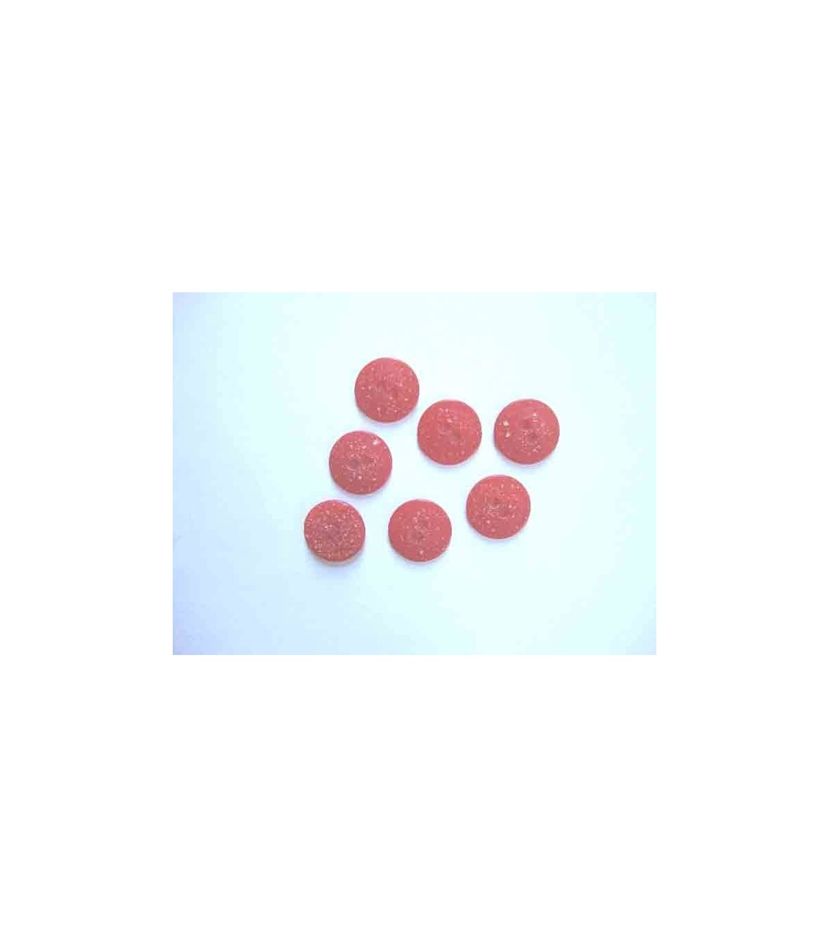 Een kunststof knoop rood mat gespikkeld met een doorsnee van 18 mm.