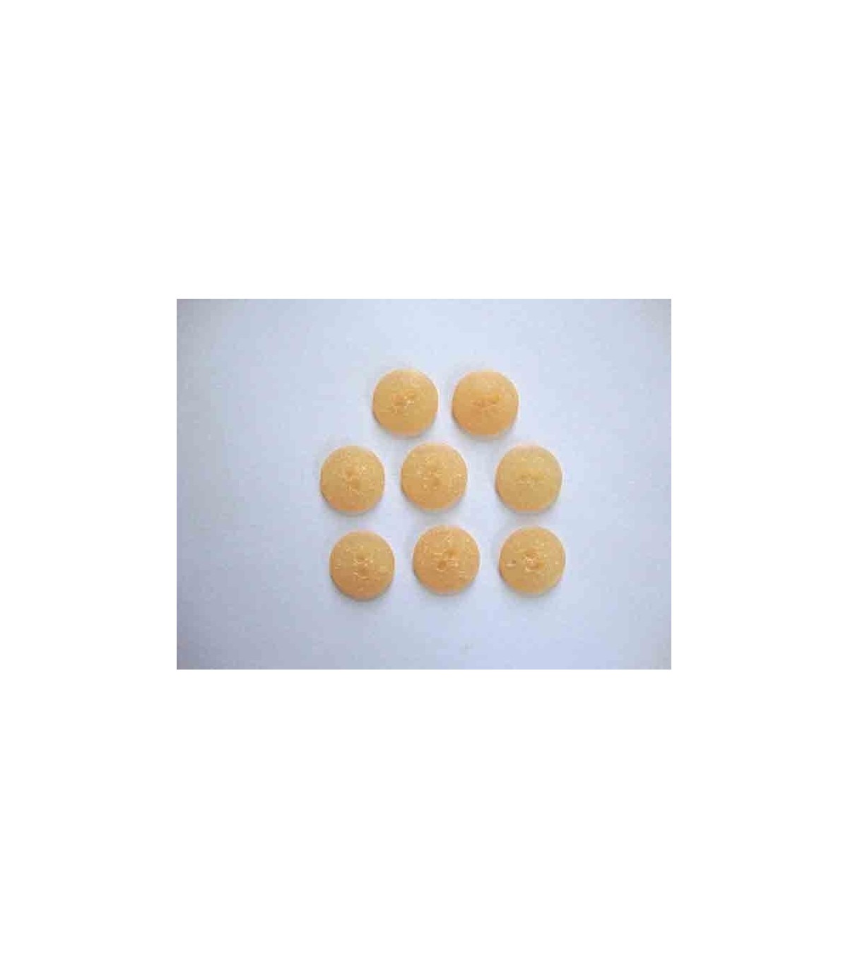 Een kunststof knoop licht oranje mat gespikkeld met een doorsnee van 15 mm.