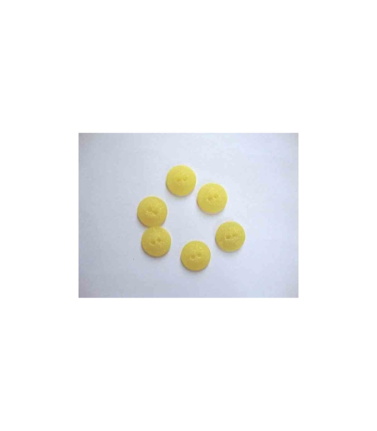 Een kunststof knoop geel mat gespikkeld met een doorsnee van 18 mm.