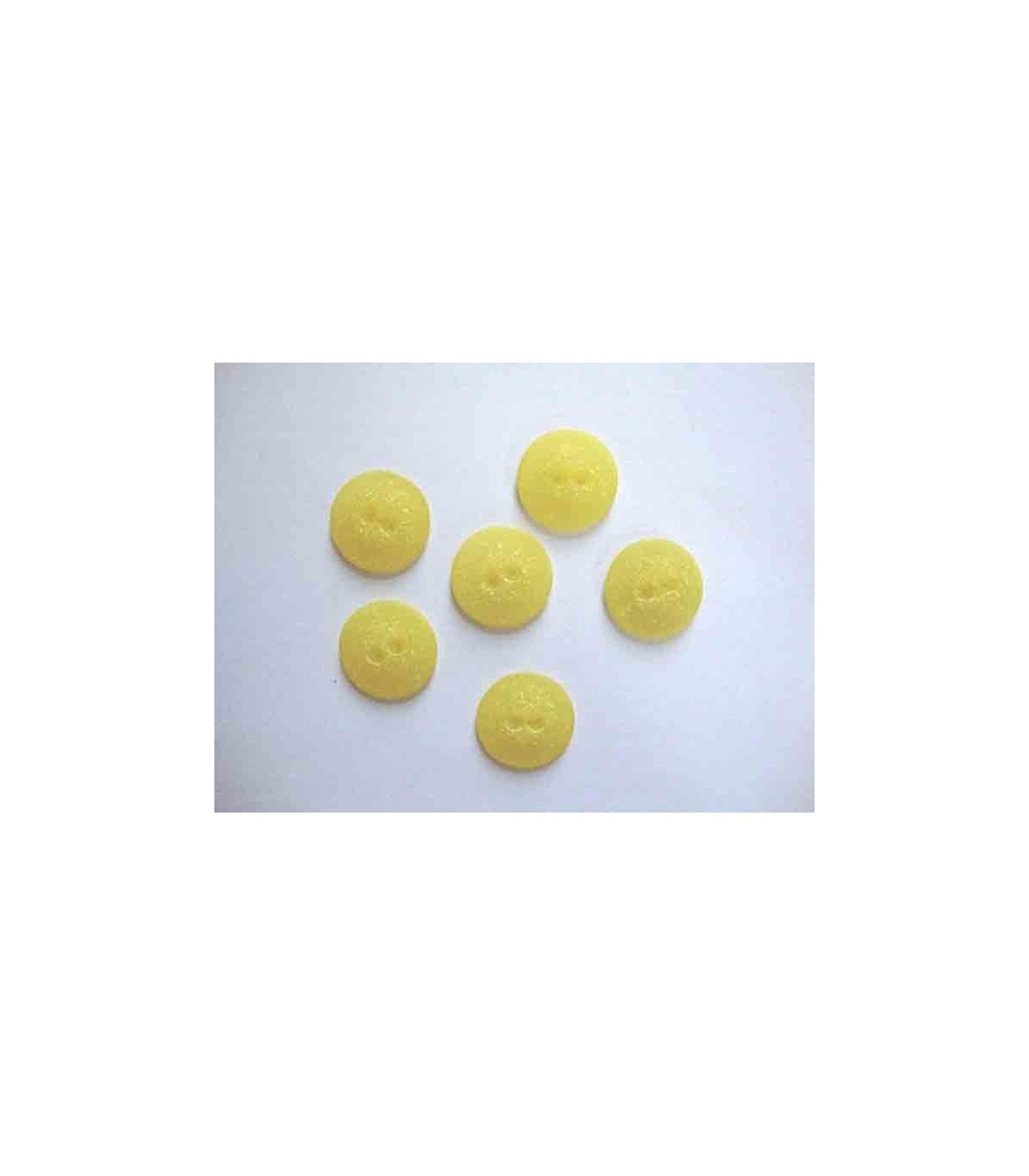 Een kunststof knoop geel mat gespikkeld met een doorsnee van 22 mm.