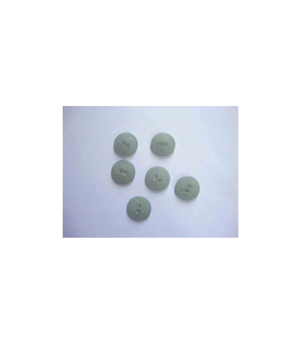 Een kunststof knoop oudgroen mat gespikkeld met een doorsnee van 18 mm.