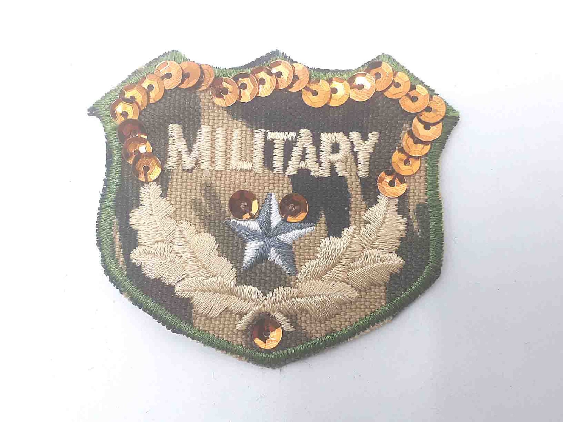 Een opstrijkbare legerapplicatie van 5,5 x 6,5cm.