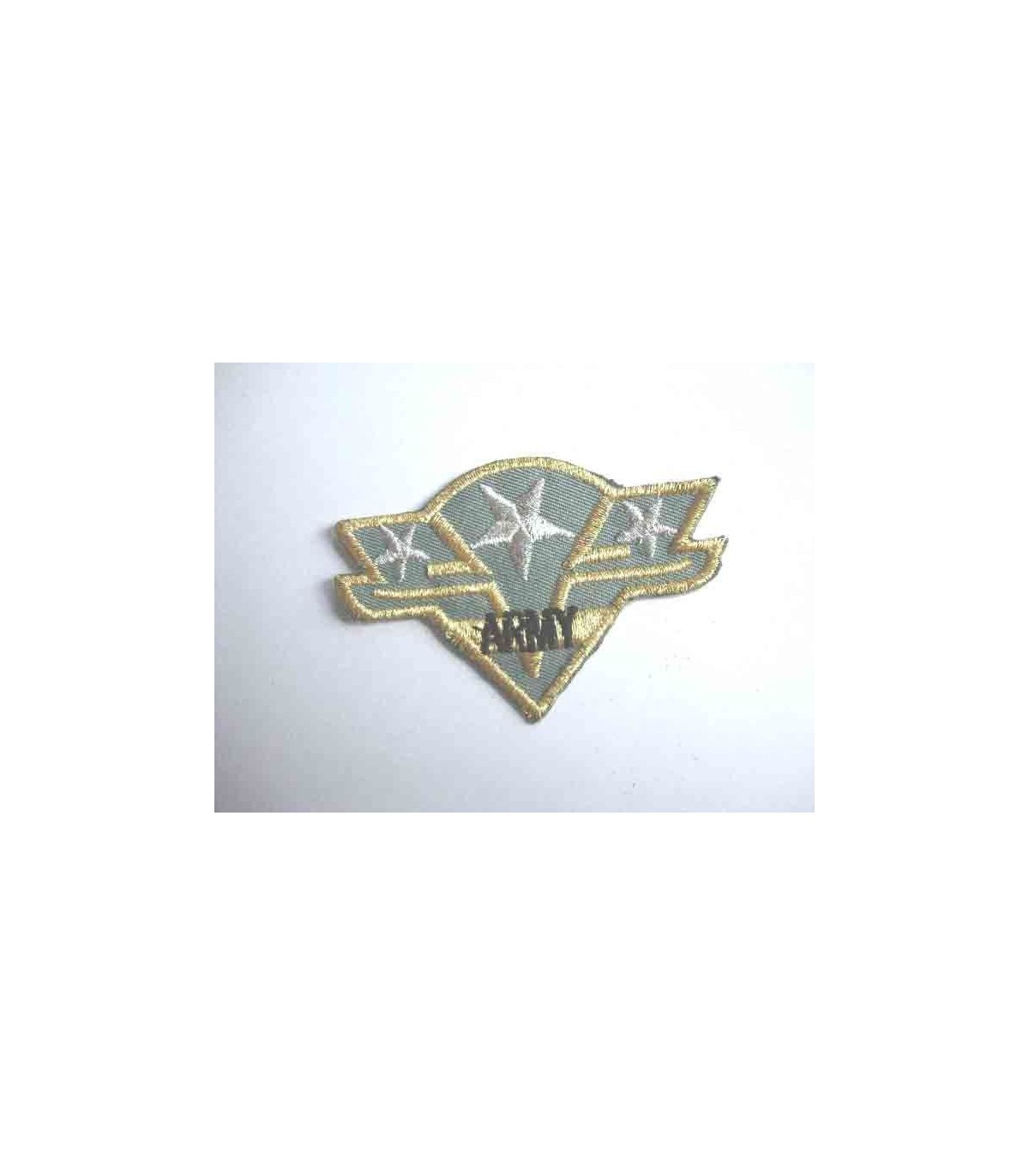 Een opstrijkbare leger applicatie. Army met 3 sterren. 7.5 x 5 cm.