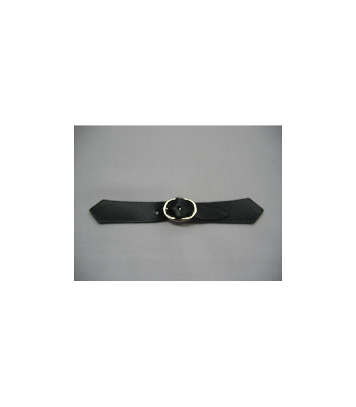 Zwart leren riempje in puntvorm.