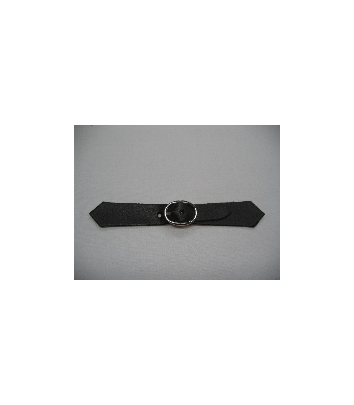 Leren riempje in puntvorm. Met gesp. Glad donkerbruin.